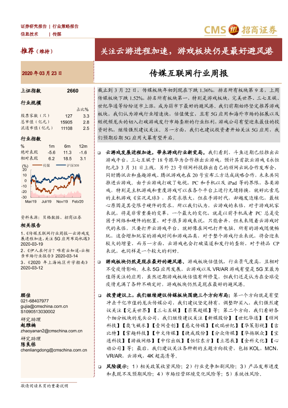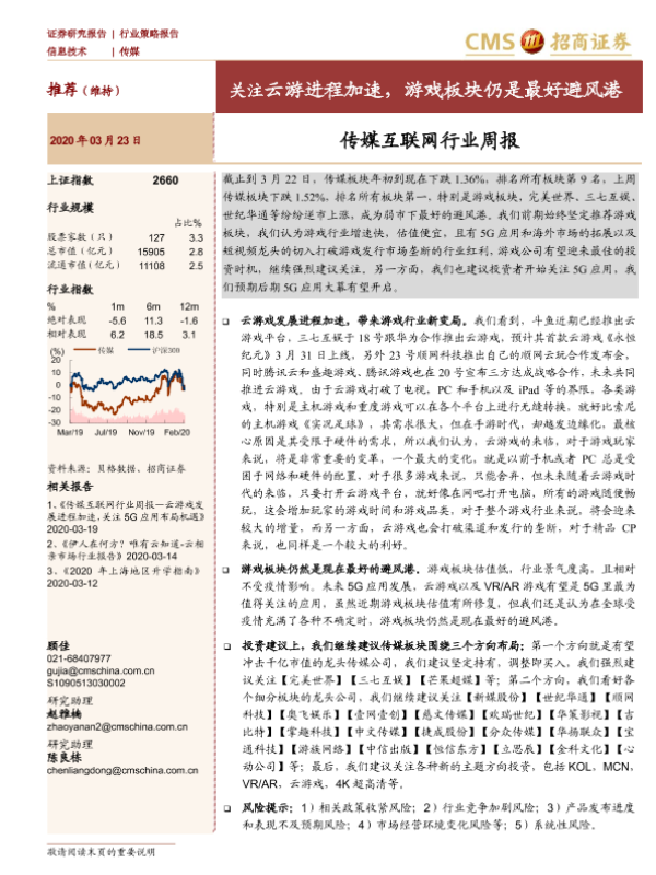 【海通证券】【20200323】传媒互联网行业周报:关注云游进程加速,游戏板块仍是最好避风港-12页