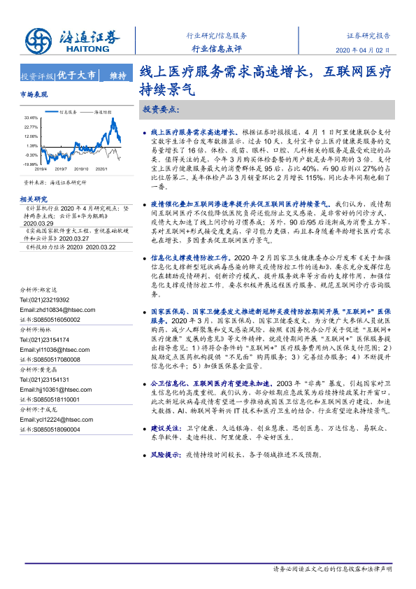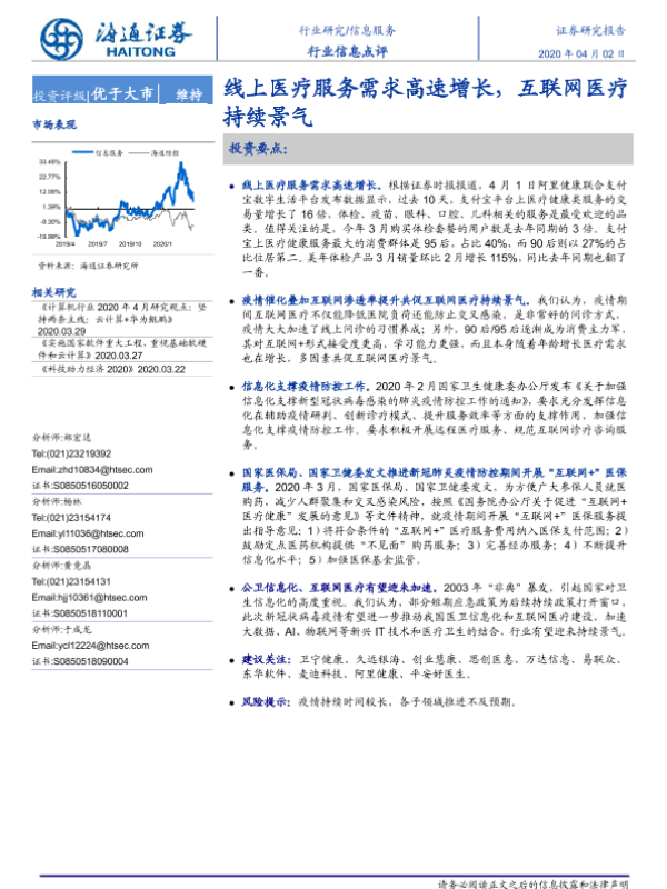 【海通证券】【20200402】信息服务行业信息点评:线上医疗服务需求高速增长,互联网医疗持续景气-2页