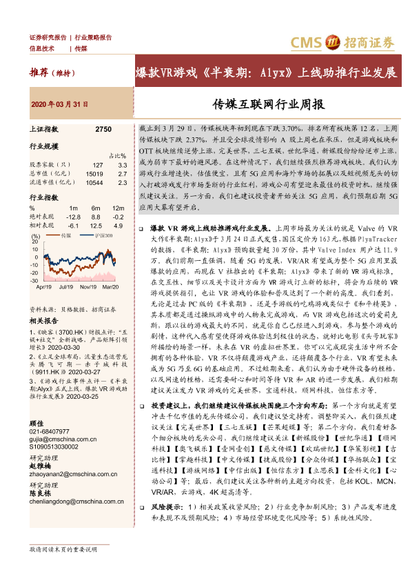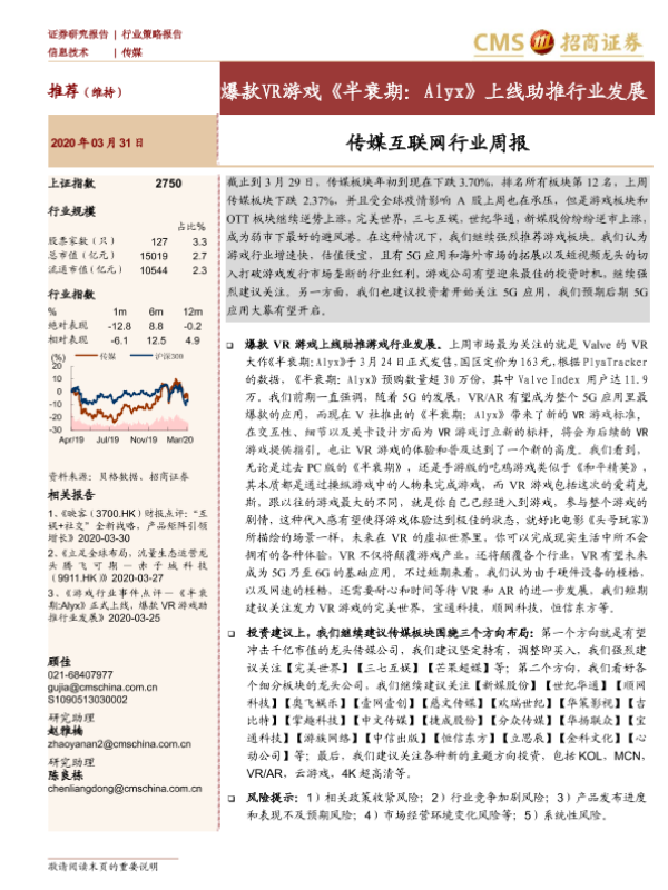 【海通证券】【20200331】传媒互联网行业周报:爆款VR游戏《半衰期:Alyx》上线助推行业发展-12页
