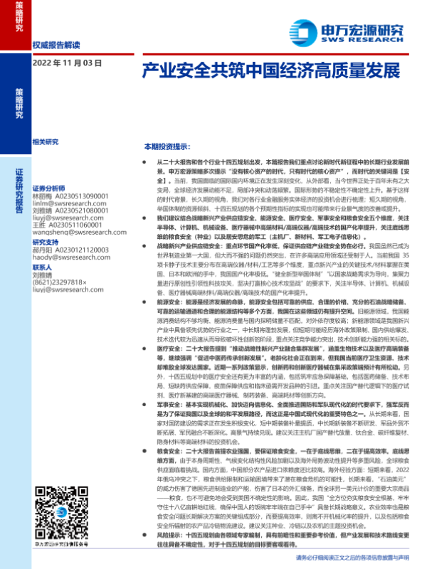 【申万宏源】【20221103】产业安全共筑中国经济高质量发展-25页