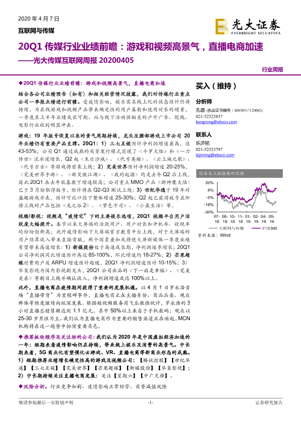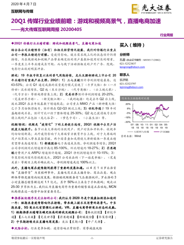 【光大证券】【20200407】20Q1传媒行业业绩前瞻:游戏和视频高景气,直播电商加速-20页