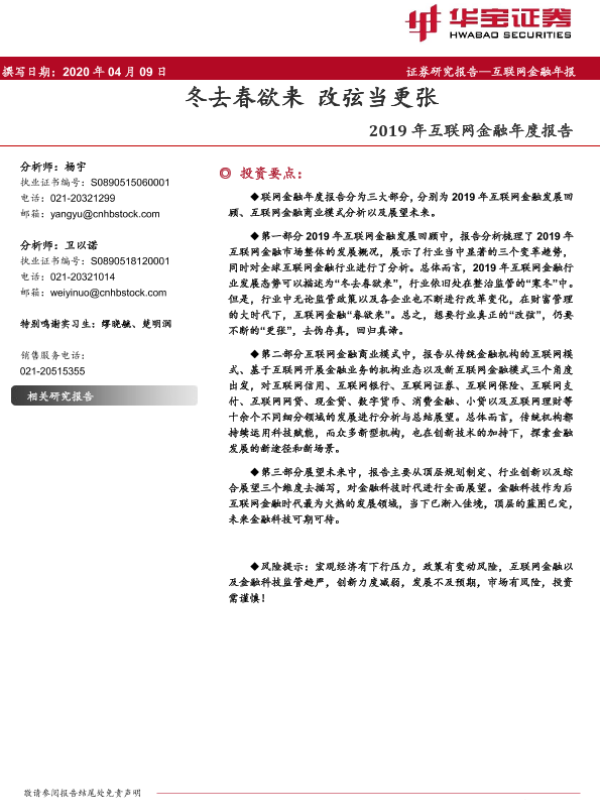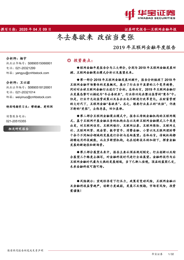 【华宝证券】【20200409】2019年互联网金融年度报告:冬去春欲来 改弦当更张-32页