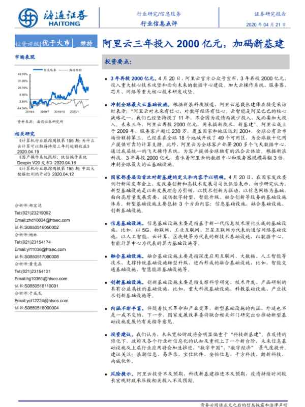 【海通证券】【20200421】信息服务行业信息点评:阿里云三年投入2000亿元,加码新基建-2页