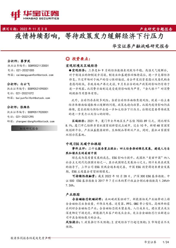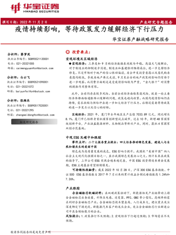 ESG 区域经济 合金磁粉芯 宏观经济 碳中和