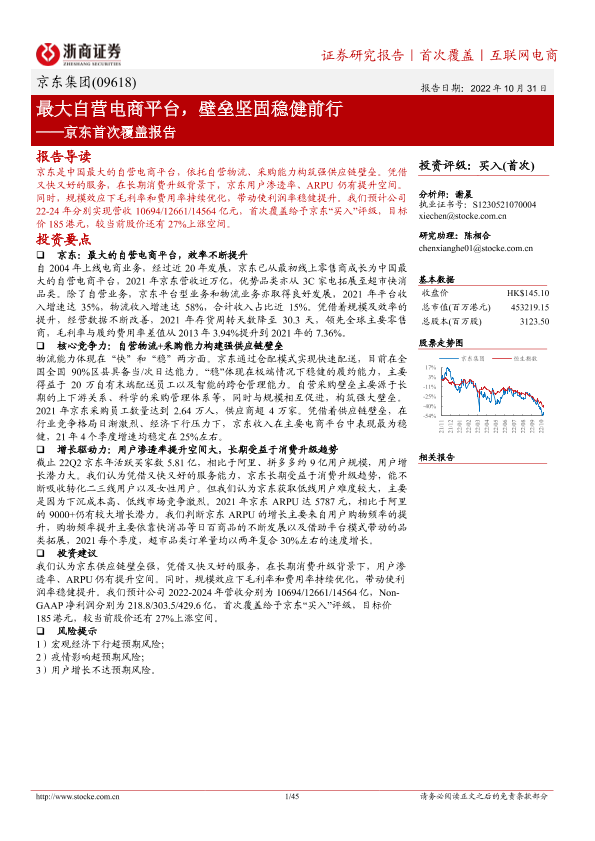 【浙商证券】【20221031】京东集团SW09618.HK京东首次覆盖报告:最大自营电商平台,壁垒坚固稳健前行-45页