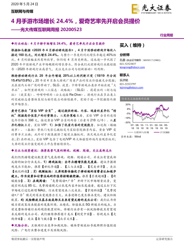 【光大证券】【20200524】4月手游市场增长24.4%,爱奇艺率先开启会员提价-19页