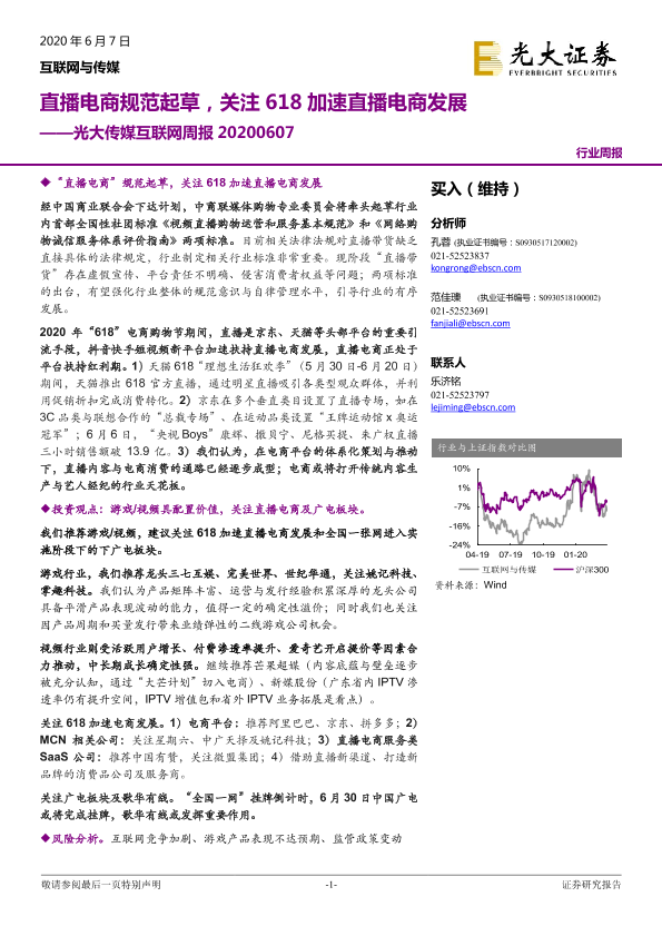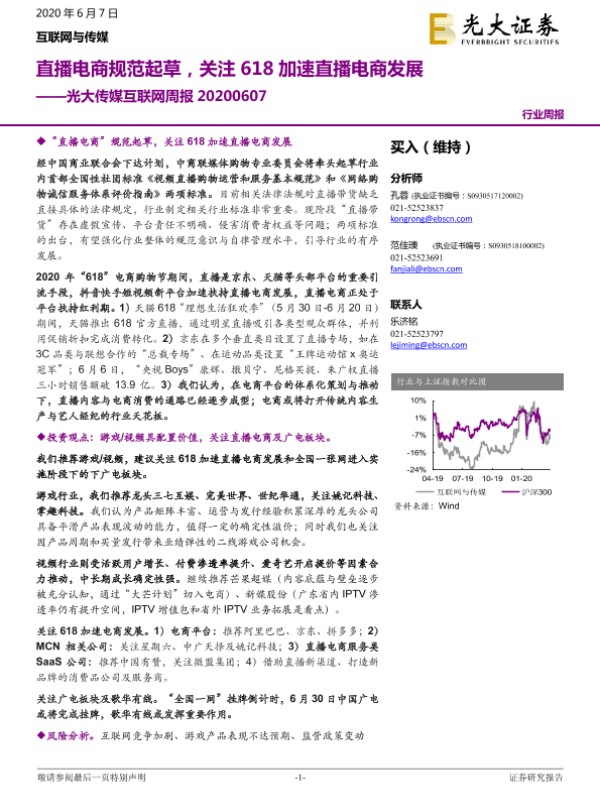 【光大证券】【20200607】光大传媒互联网周报:直播电商规范起草,关注618加速直播电商发展-18页