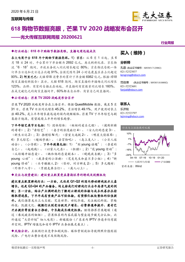 【光大证券】【20200621】光大传媒互联网周报:618购物节数据亮眼,芒果TV2020战略发布会召开-19页