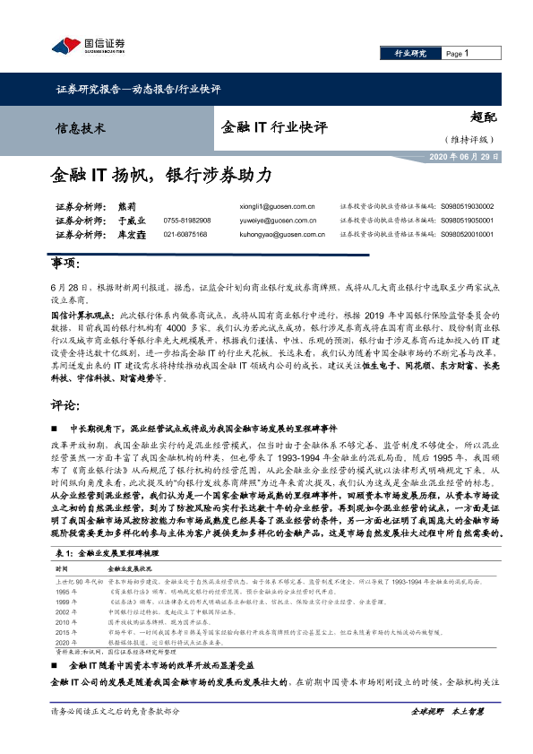 【国信证券】【20200629】金融IT行业快评:金融IT扬帆,银行涉券助力-5页