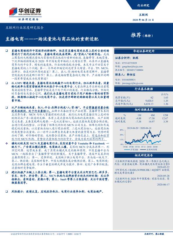 【华创证券】【20200621】互联网行业深度研究报告:直播电商——一场流量池与商品池的重新适配-37页