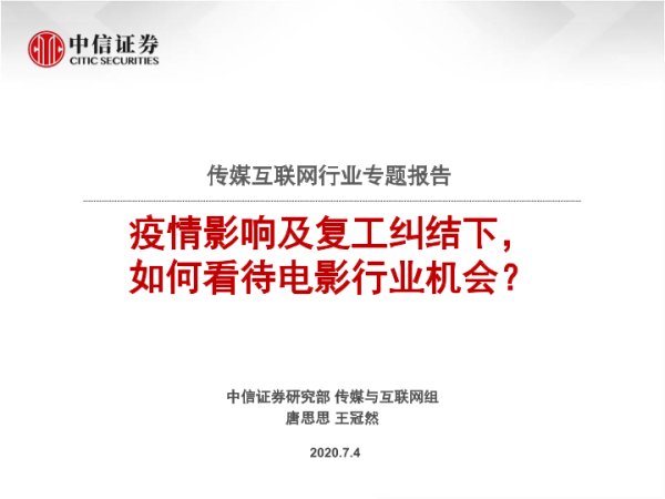 【中信证券】【20200704】疫情影响及复工纠结下,如何看待电影行业机会?-50页