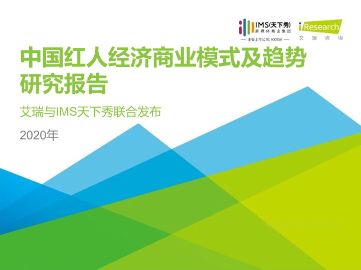 【艾瑞不IMS天下秀】【2020】2020年中国红人经济商业模式及趋势研究报告-42页