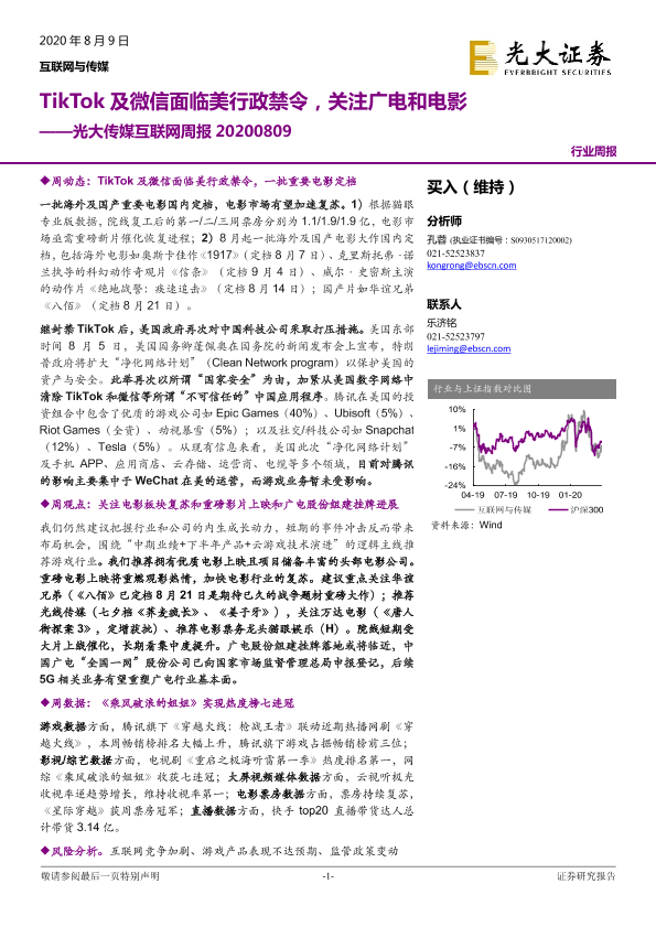 【光大证券】【20200809】光大传媒互联网周报:TikTok及微信面临美行政禁令,关注广电和电影-12页