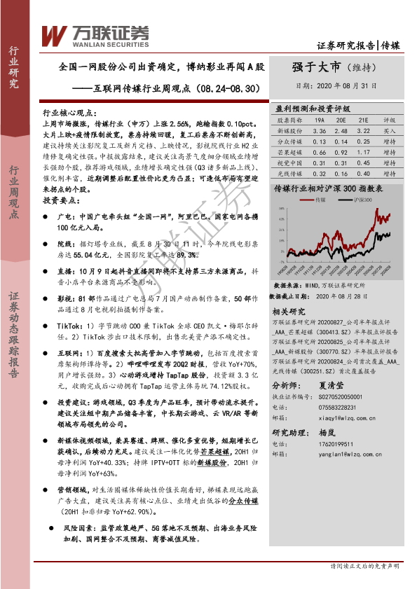 【万联证券】【20200831】互联网传媒行业周观点:全国一网股份公司出资确定,博纳影业再闯A股-21页