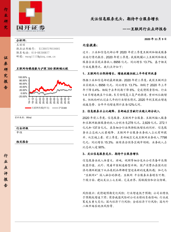 【国开证券】【20201109】20201109-国开证券-互联网行业点评报告:关注信息服务龙头,期待平台服务增长-5页