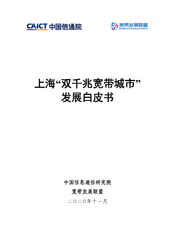 【中国信息通信研究院】【202011】上海“双千兆宽带城市”发展白皮书-50页