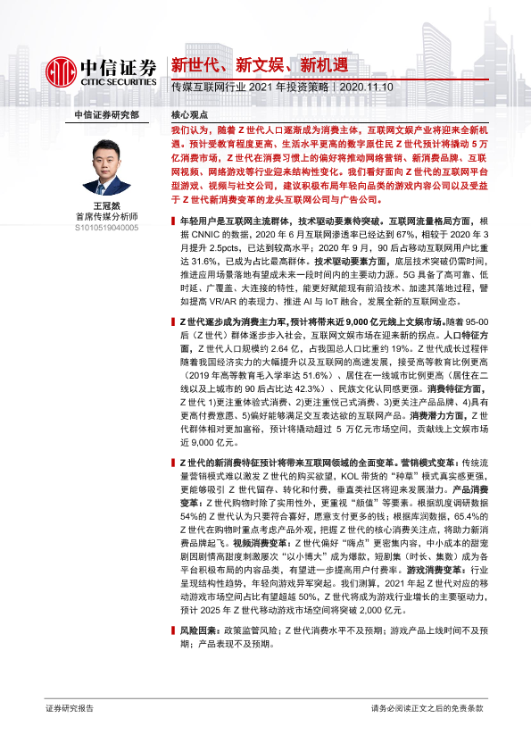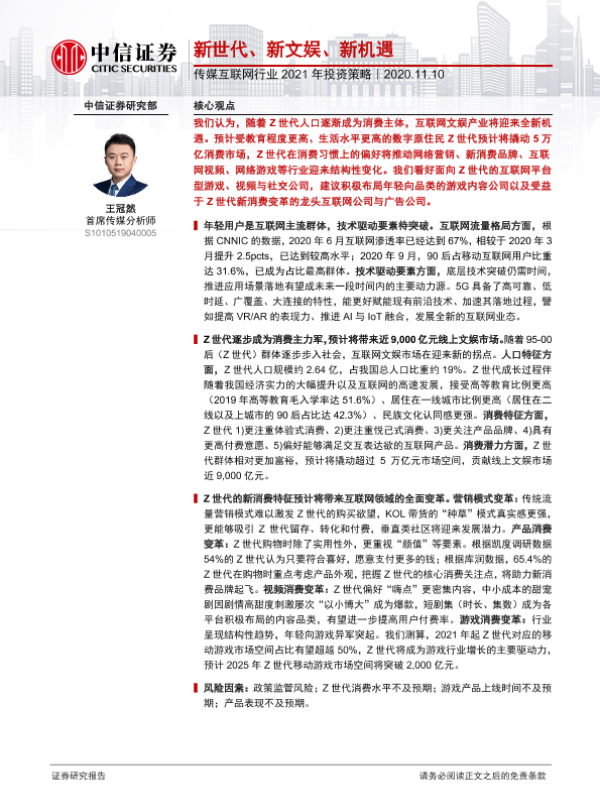 【中信证券】【20201110】传媒互联网行业2021年投资策略:新世代、新文娱、新机遇-46页
