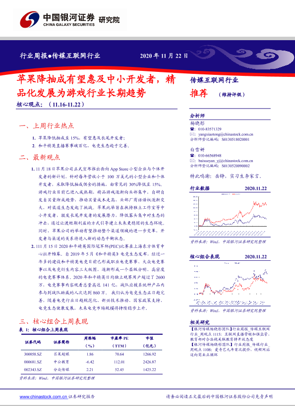 【银河证券】【20201122】中国银河-传媒互联网行业周报:苹果降抽成有望惠及中小开发者,精品化发展为游戏行业长期趋势-36页