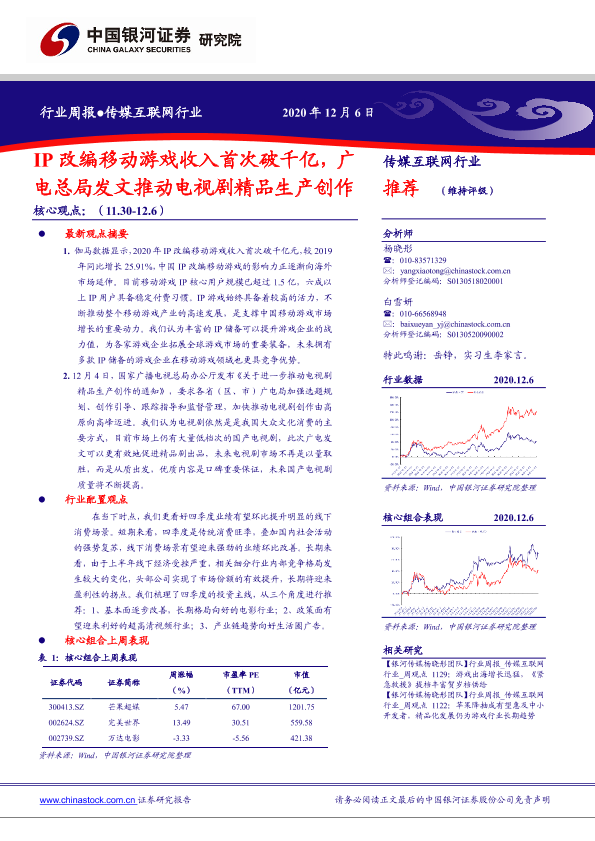 【银河证券】【20201206】20201206-中国银河-传媒互联网行业周报:IP改编移动游戏收入首次破千亿,广电总局发文推动电视剧精品生产创作-34页