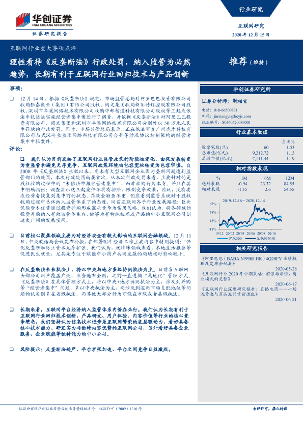 【华创证券】【20201215】互联网行业重大事项点评:理性看待《反垄断法》行政处罚,纳入监管为必然趋势,长期有利于互联网行业回归技术与产品创新-3页