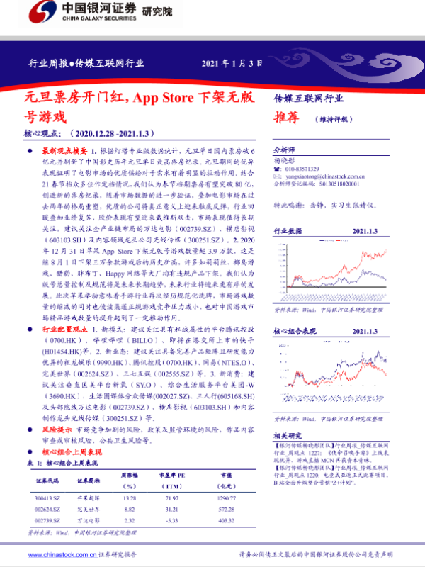 【银河证券】【20210103】20210103-中国银河-传媒互联网行业周报:元旦票房开门红,下架无版号游戏-34页