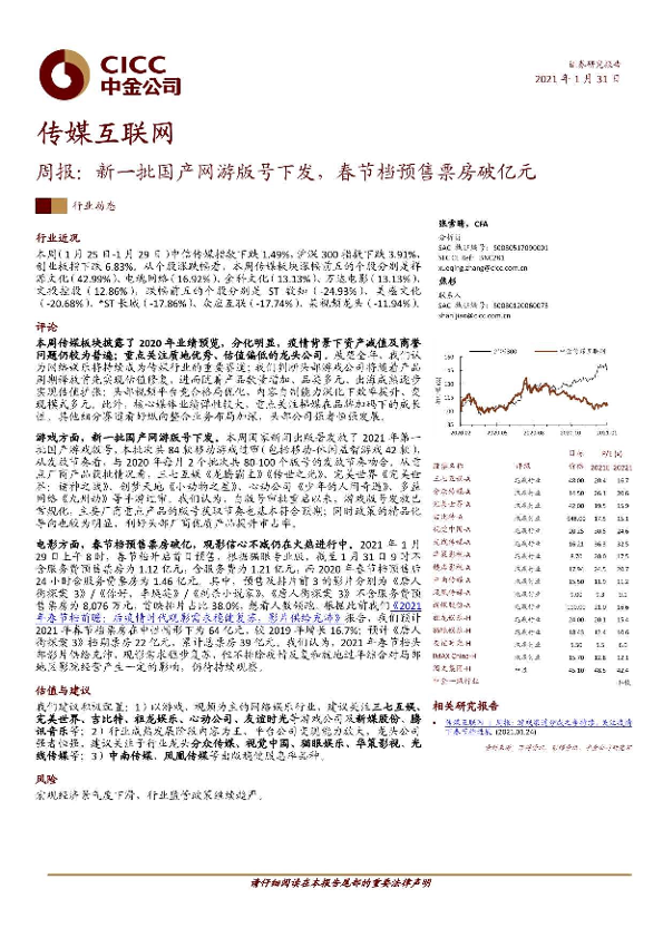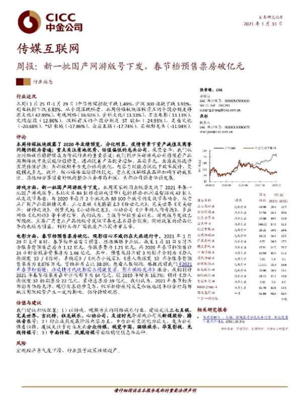 【中金公司】【20210131】传媒互联网行业周报:新一批国产网游版号下发,春节档预售票房破亿元-20页