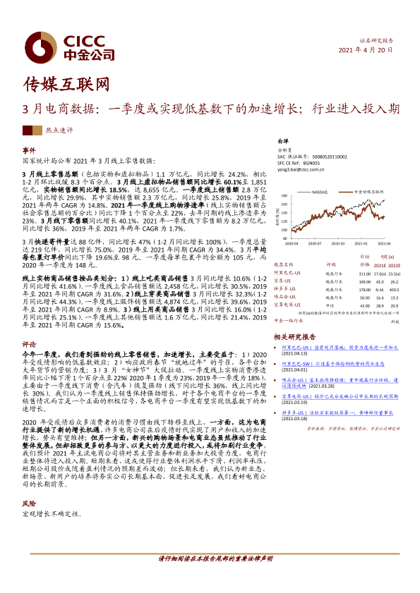 【中金公司】【20210420】传媒互联网3月电商数据:一季度或实现低基数下的加速增长;行业进入投入期-16页