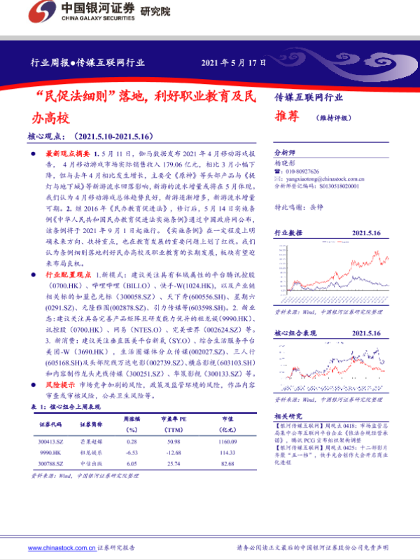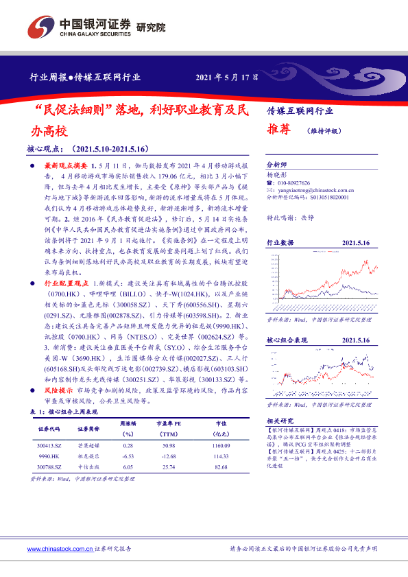 【银河证券】【20210517】20210517-中国银河-传媒互联网行业周报:“民促法细则”落地,利好职业教育及民办高校-34页