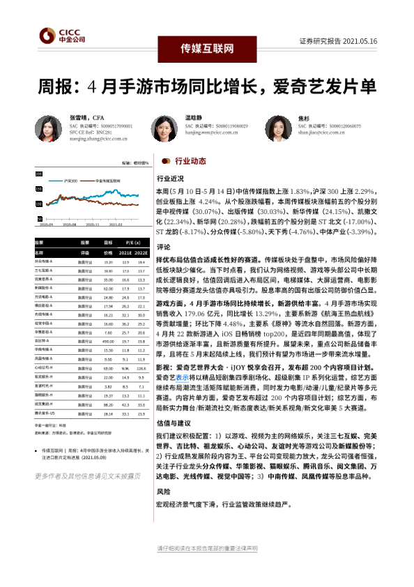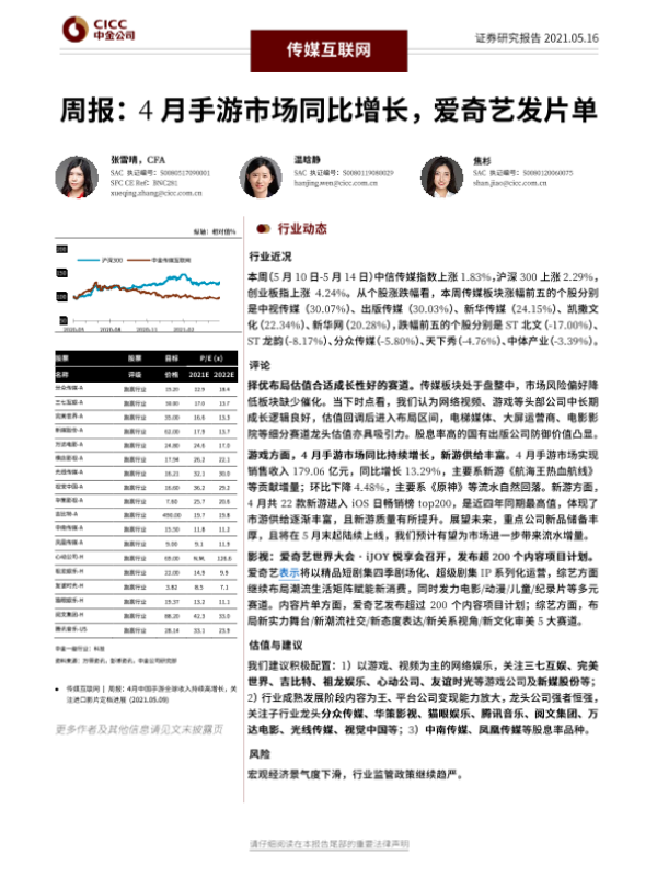 【中金公司】【20210516】传媒互联网行业周报:4月手游市场同比增长,爱奇艺发片单-27页