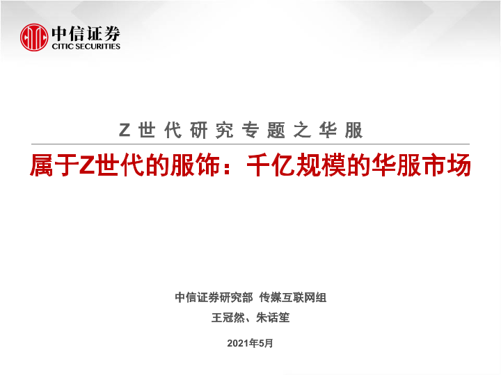 【中信证券】【202105】20210526-中信证券-传媒互联网行业Z世代研究专题之华服:属于Z世代的服饰:千亿规模的华服市场-41页