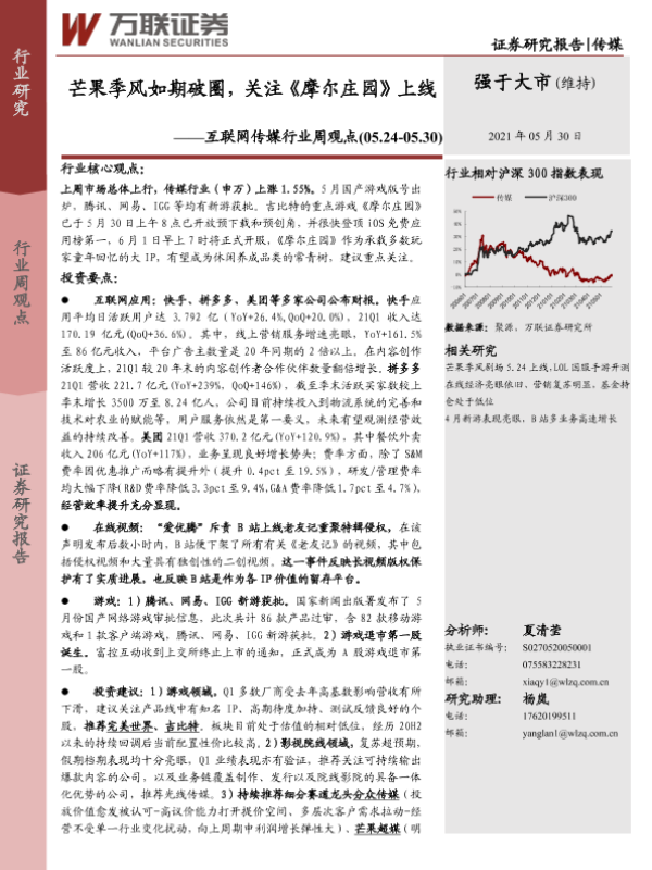 【万联证券】【20210530】互联网传媒行业周观点:芒果季风如期破圈,关注《摩尔庄园》上线-19页