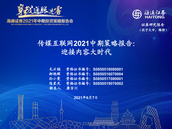 2021中期 互联网 传媒 内容大时代 策略报告