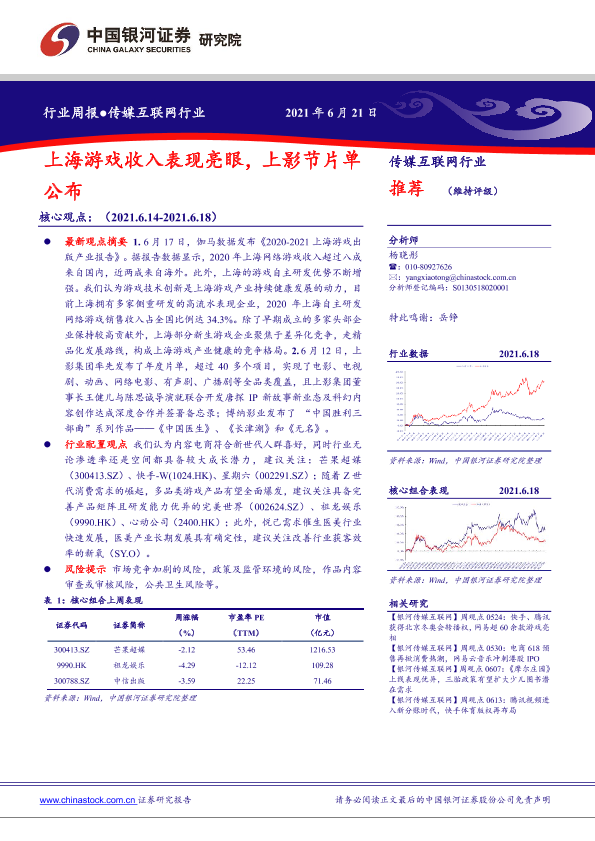 【银河证券】【20210621】20210621-中国银河-传媒互联网行业周报:上海游戏收入表现亮眼,上影节片单公布-33页