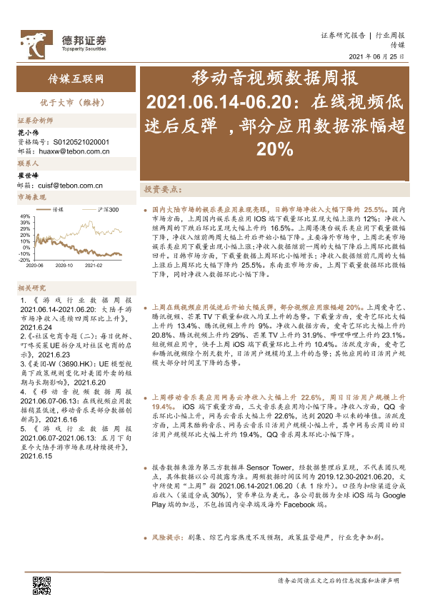 【德邦证券】【20210625】20210625-德邦证券-移动音视频数据周报:在线视频低迷后反弹,部分应用数据涨幅超20%-16页