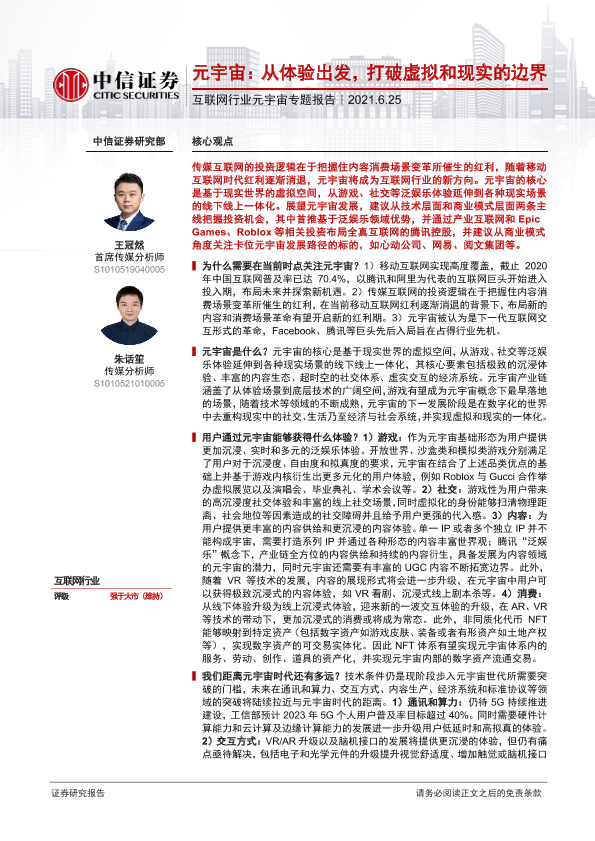 【中信证券】【20210625】元宇宙:从体验出发,打破虚拟和现实的边界-42页