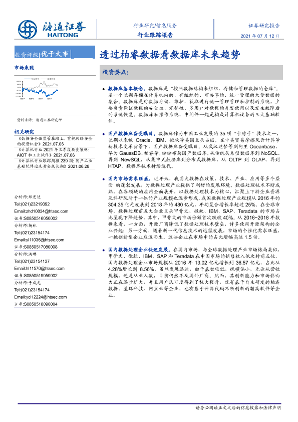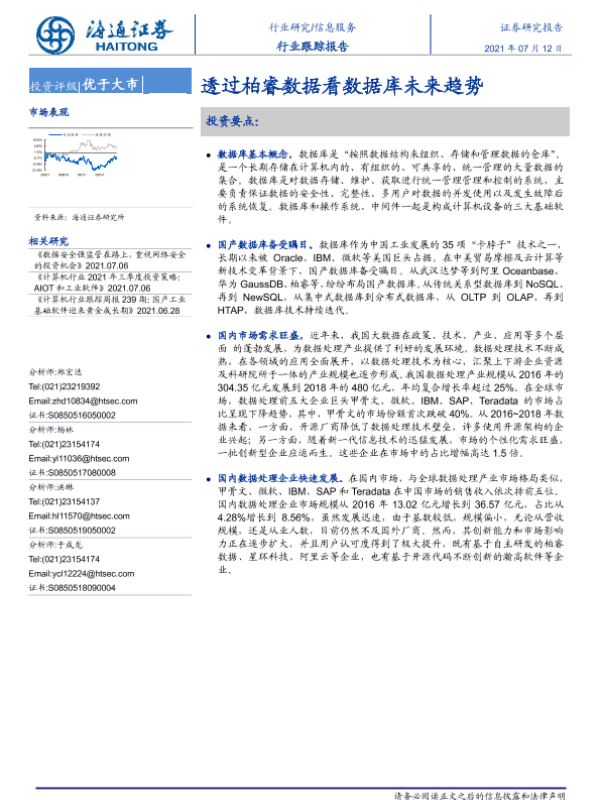 【海通证券】【20210712】信息服务行业跟踪报告:透过柏睿数据看数据库未来趋势-5页