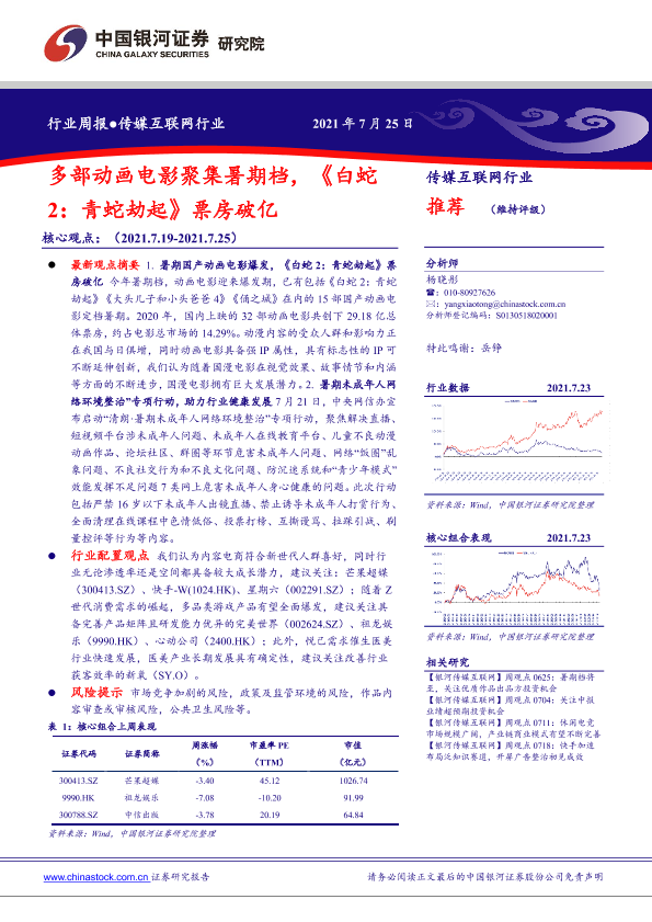 【银河证券】【20210725】20210725-中国银河-传媒互联网行业周报:多部动画电影聚集暑期档,《白蛇2:青蛇劫起》票房破亿-36页