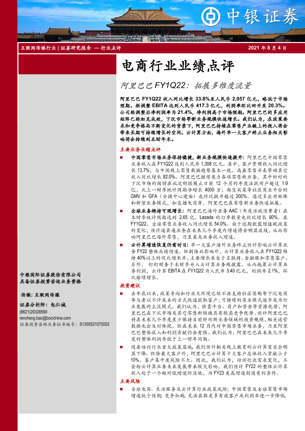 【中银证券】【20210804】电商行业业绩点评:阿里巴巴FY1Q22:拓展多维度流量-3页