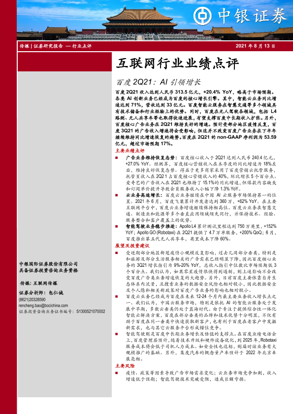 【中银证券】【20210813】互联网行业业绩点评:百度2Q21:AI引领增长-3页