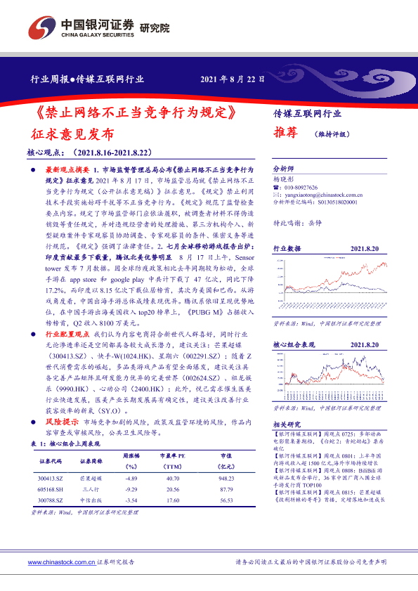 【银河证券】【20210822】20210822-中国银河-传媒互联网行业周报:《禁止网络不正当竞争行为规定》征求意见发布-35页