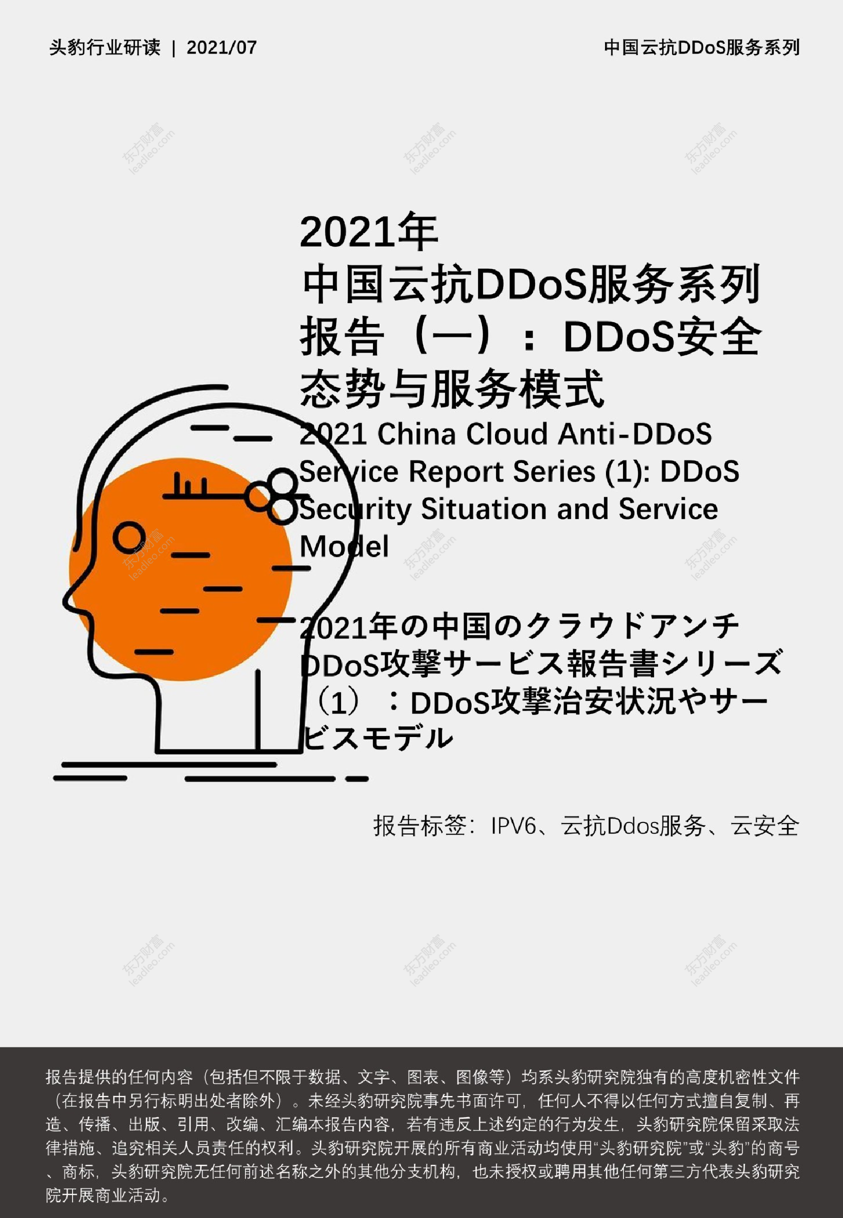 【头豹研究院】【2021】2021年中国云抗DDoS服务系列报告(一):DDoS安全态势与服务模式-27页