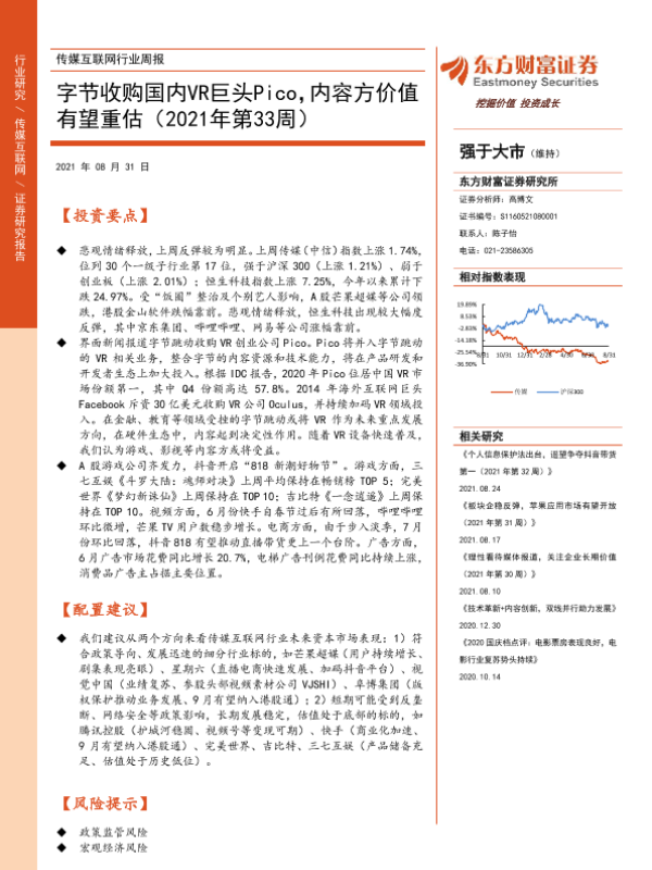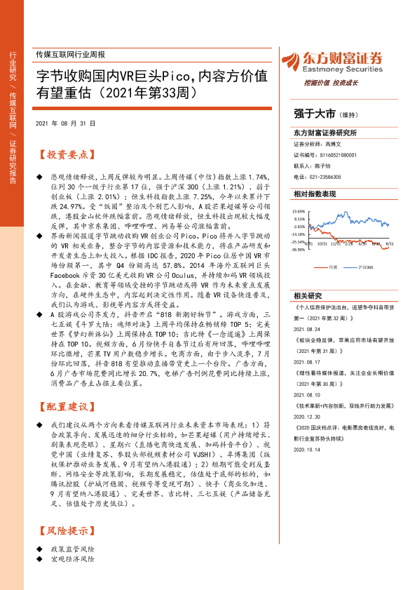 【东方财富证券】【20210831】传媒互联网行业周报:字节收购国内VR巨头Pico,内容方价值有望重估(2021年第33周)-13页