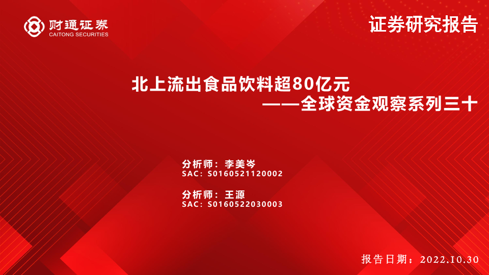 【财通证券】【20221030】全球资金观察系列三十:北上流出食品饮料超80亿元-30页