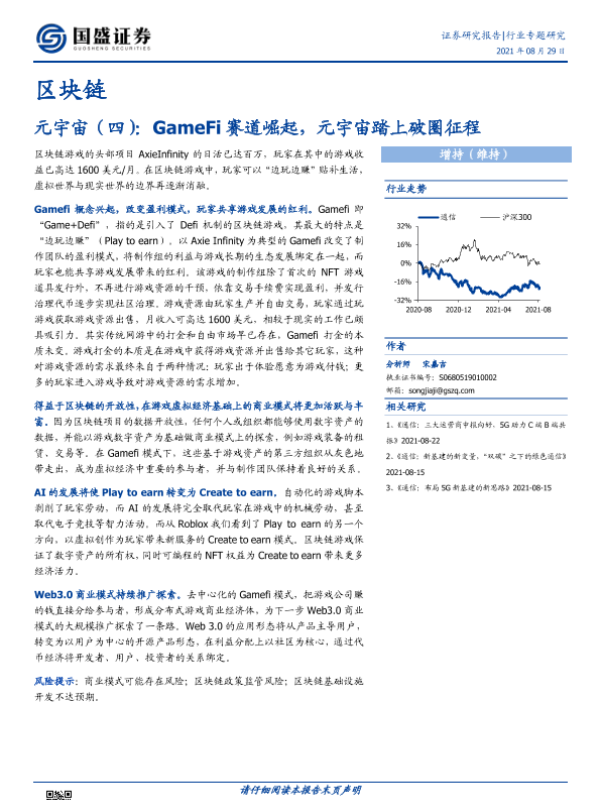 【国盛证券】【20210829】区块链 元宇宙(四):GameFi赛道崛起,元宇宙踏上破圈征程-14页