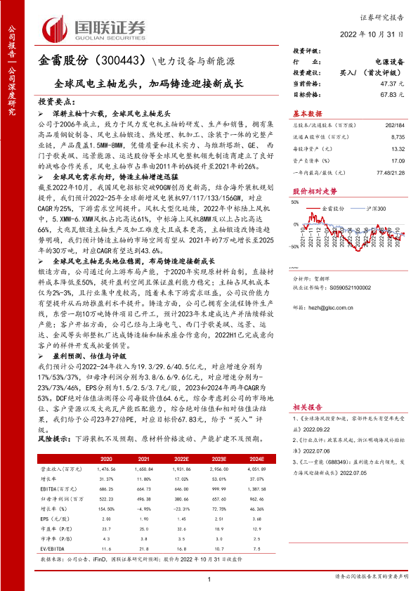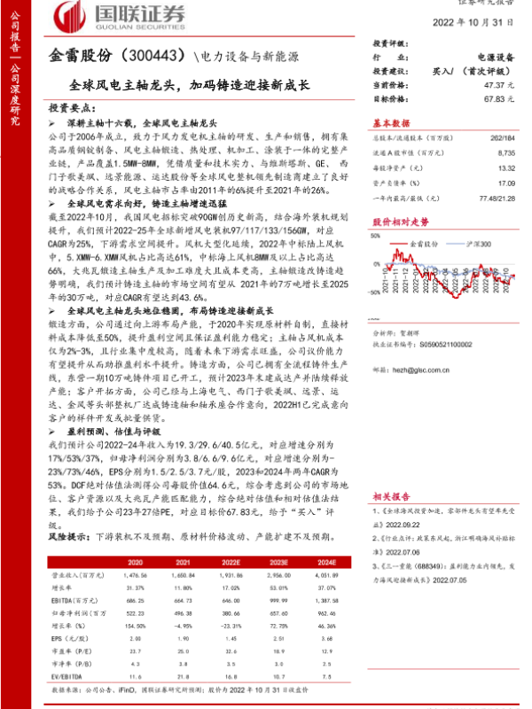 【国联证券】【20221031】全球风电主轴龙头,加码大兆瓦铸件迎接新成长-33页