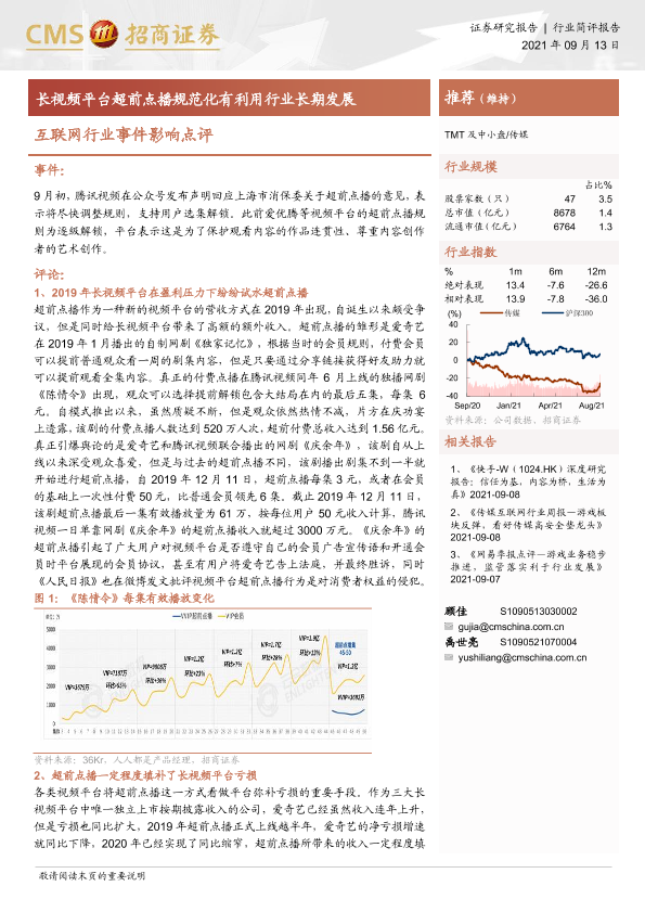 【海通证券】【20210913】互联网行业事件影响点评:长视频平台超前点播规范化有利用行业长期发展-3页