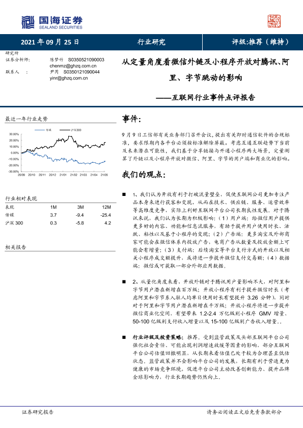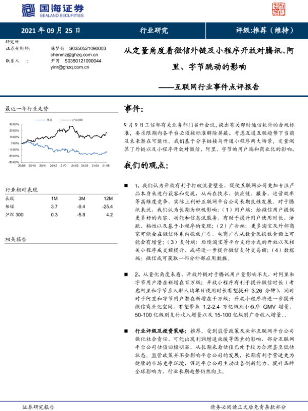【国海证券】【20210925】从定量角度看微信外链及小程序开放对腾讯、阿里、字节跳动的影响-14页