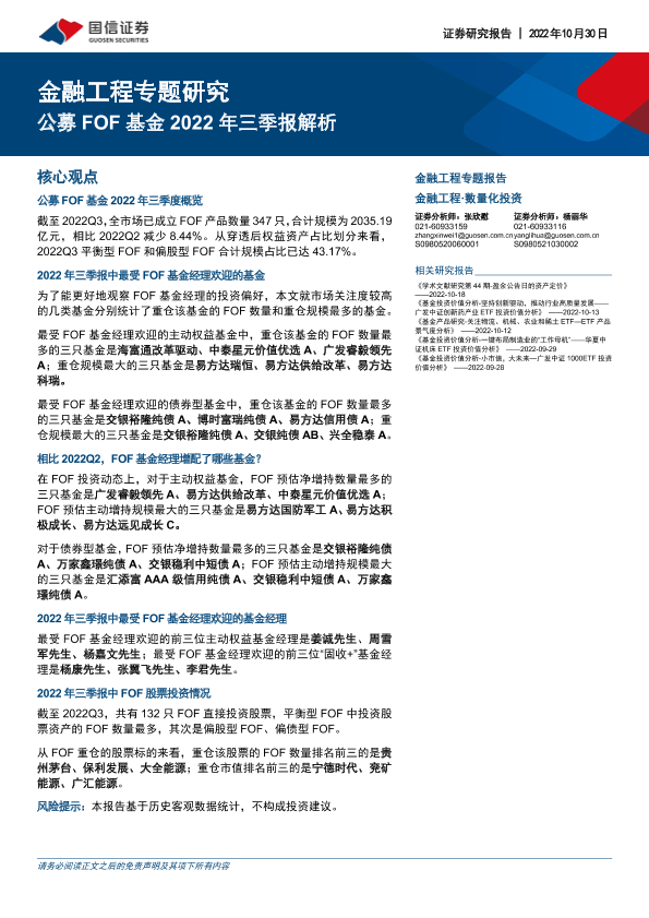 三季报 公募FOF 国信证券 基金分析 金融工程