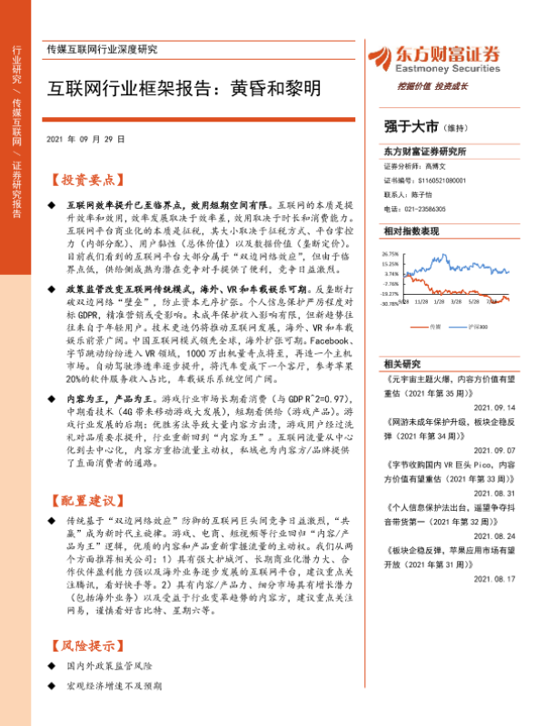 【东方财富证券】【20210929】互联网行业框架报告:黄昏和黎明-35页