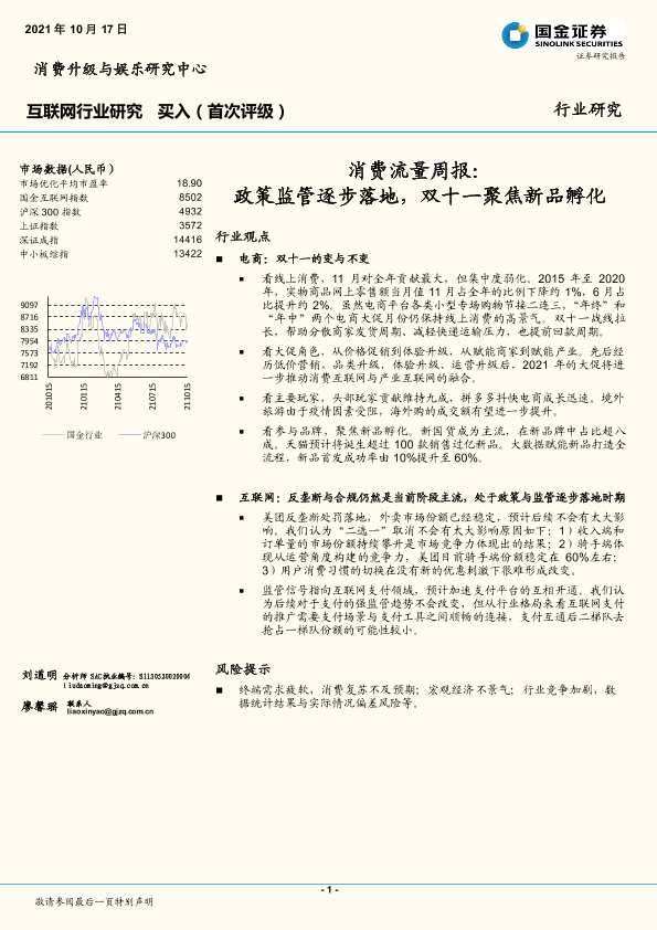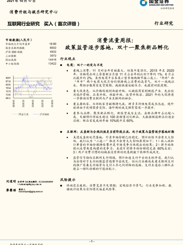 【国金证券】【20211017】互联网消费流量周报:政策监管逐步落地,双十一聚焦新品孵化-11页